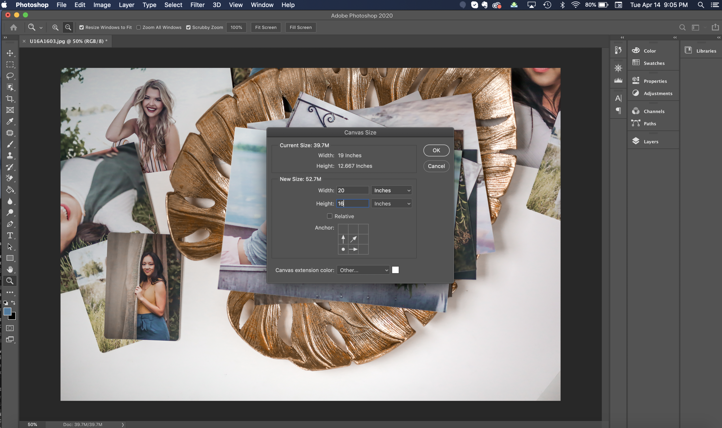 The image i’m using is already cropped to 13x19 and i’m going to lay it out on a 16x20 using the Canvas Tool in Photoshop.